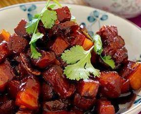 配料:五花肉、蔬菜罐头、蚝油、生抽、老抽、腐乳、白糖、生粉、蜂蜜、葱花或葱花、姜末、盐、味精、食油;