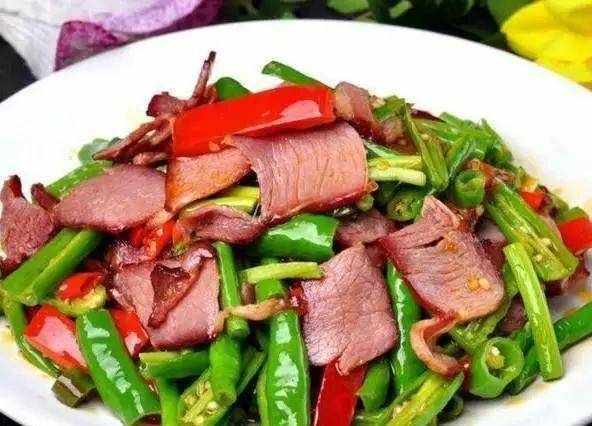 材料:香肠(2条)、培根(1条)、红辣椒(1条)、青椒(2条)、蒜头(适量)、盐(适量)、生抽(适量)