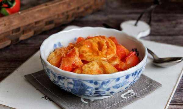 1、西红柿去皮切小块;将鲜虾打成泥,混入虾片中。将它们拧成小条,放入一锅清水中煮熟,然后取出备用。