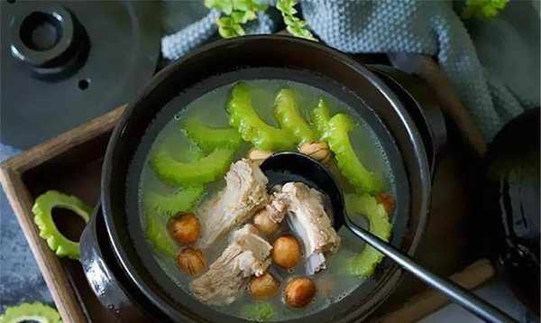 6.待汤色变白时,加入苦精和莲子,再用小火煮15分钟。