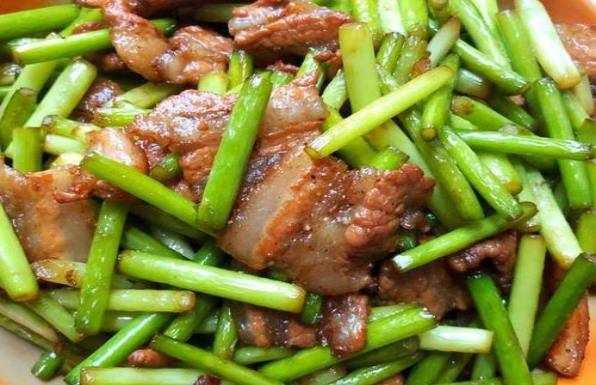 5、汤汁浓稠时,加入半茶匙盐,加入红辣椒和蒜叶,翻炒片刻即可。