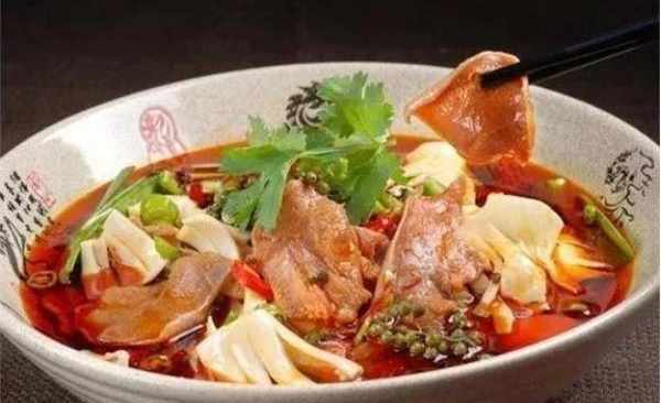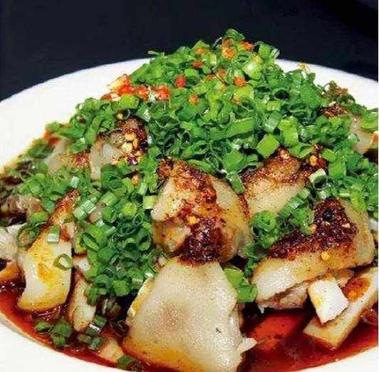 3.锅洗净,加红汤烧开,放入猪舌片、猪颈肉片,加入蚝油、鸡精、鲜胡椒粉、青辣椒圈和花椒油煮熟,装碗放在配料上.另取一平底锅,放油烧热,放入干青花椒炒香,最后起锅倒在碗里的菜上。服务。