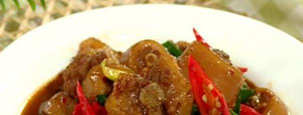 做法1、先将红辣椒用电热板切成段,蒜头压扁,姜拍扁和猪尾剁成段,蒜叶用斜刀切段。