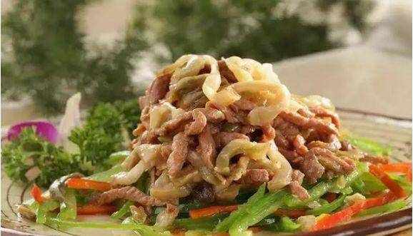 1.猪肉洗净,切片,加盐、酱油、油、淀粉(玉米粉和水混合,腌十分钟);