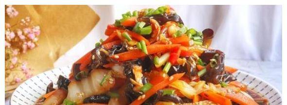 材料:卷心菜、胡萝卜、香菇、葱蒜、香辣香蕉、盐、酱油、蚝油、醋、辣椒油、白芝麻。