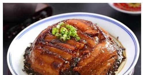 原料:五花肉600克,梅干60克,八角1个,桂皮、月桂叶适量,白胡椒粉2茶匙,酱油适量,葱花,白糖1茶匙,适量。黑酱油姜料酒2汤匙,菜籽油300毫升