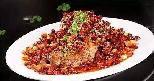 3、锅中油烧热,加入干辣椒100克、干辣椒20克、葱段50克、老干妈辣酱适量。炒至变色,加入40克姜末和蒜末,50克辣椒面,15克香料粉和5克糖混合,加少许水调匀,加入50克鲜辣椒拌匀,淋在上面蒸好的猪头,撒上葱花和煮熟的芝麻即可上桌。