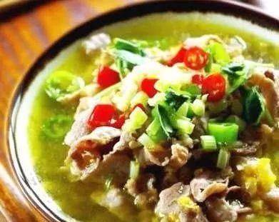 3、肥牛肉放入沸腾的汤中煮至变色;