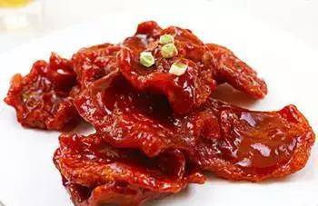 配料:猪里脊肉240克,水、油、盐、料酒1茶匙、淀粉、葱花10克、番茄酱70克、浓缩橙汁2汤匙、糖、白醋