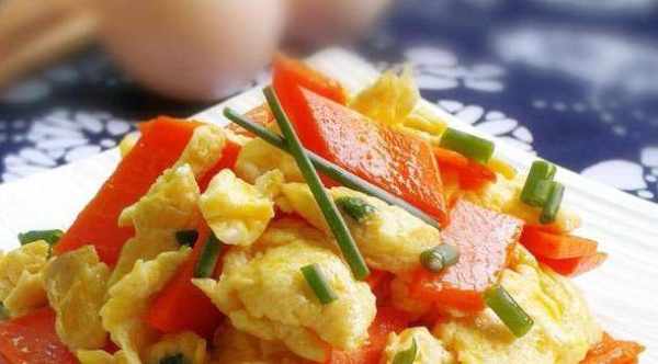 材料:鸡蛋、胡萝卜、小葱、料酒、盐、油