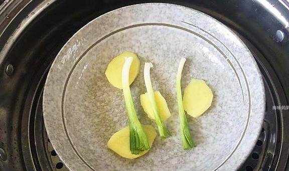 -清洗干净蒸锅,倒入适量的清水,放入一部分葱和姜片,倒入适量的料酒,盖上蒸片,然后开火煮开水。