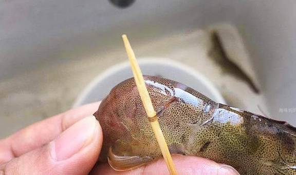 -接下来,我们倒掉脏水,然后用手抓住虾尾,用牙签从虾头的第二节挑出虾线,这招很管用,方便又快速!别偷懒哦,有些虾吃了不少东西,虾线需要挑出来更卫生。挑完后清洗干净备用。