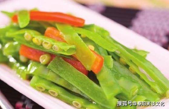 做法:1、豆荚两端捏掉,豆筋撕下,洗净,先对半切开,再切成小条;