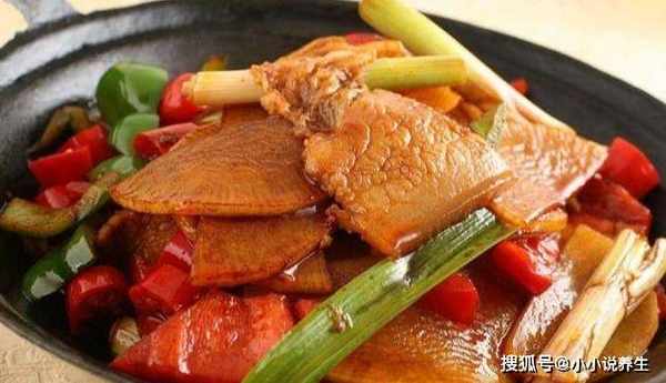 4、五花肉用中火煎至肥润,加入青红椒炒熟。