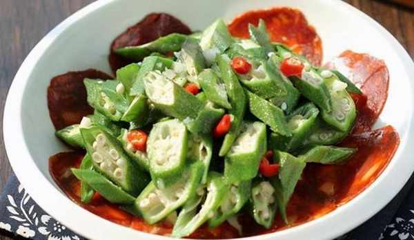 3.焯好的秋葵沥干水分放入碗中,加少许盐;