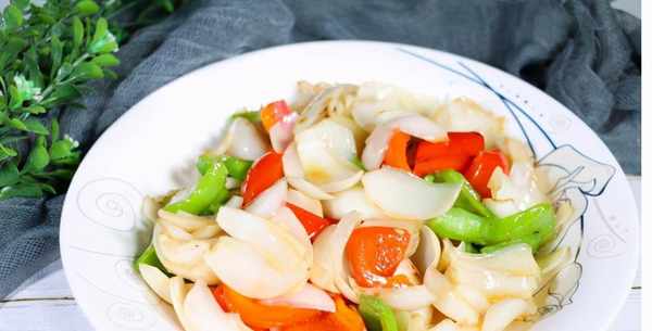 原料:小黄瓜150克,鱿鱼角花100克。蒜片20克,小米椒25克,料酒10克,【葱、姜】少许。