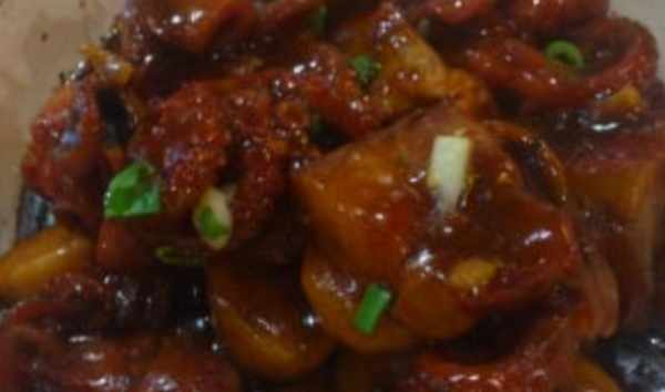 7.大火收汁后,加入少许淀粉水勾芡,出锅后撒上葱花。完成。