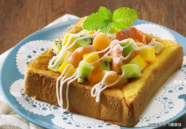 辅料:沙拉30克、白虾4只、芒果50克、厚片吐司1片