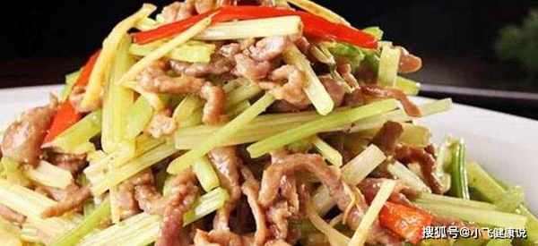 4.加入葱、姜、蒜末炒香。加入香菇条,翻炒均匀。加入芹菜,炒熟,用盐和胡椒调味。加入香菜条,搅拌至香,待蔬菜几乎分解时关火。