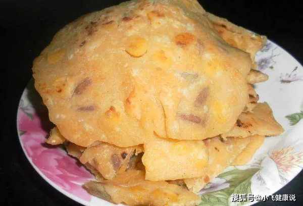 5、锅里放油,将生玉米饼放入,文火煎至两面金黄。