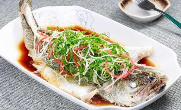 2、15分钟后,起锅烧水,水开后把鱼放上去,大火蒸10分钟,到时间后拿出来,把葱姜扔掉,多余的水分也沥掉。之后把蒸鱼豉油浇在鱼的身上,然后切点葱姜丝,铺在鱼的身上,最后用烧热的食用油,浇在上面即可。