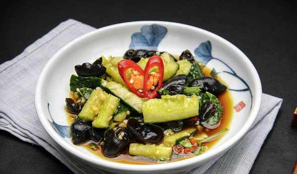 黄瓜清脆,有解腻的功效;黑木耳爽脆,有“素中之荤”的称号。这两个在一起,一口下去,透人心脾,还有润燥养血等功效
