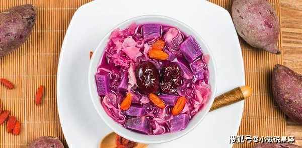 这碗汤是紫薯薏米白蘑菇汤。紫薯营养价值高,含有丰富的纤维素。可清肠刮油,多食不长胖。银耳是穷人的燕窝。虽然价格便宜,但富含胶质。定期进食对皮肤再生非常重要。至于大麦,也很重要。是去湿气的好食物。