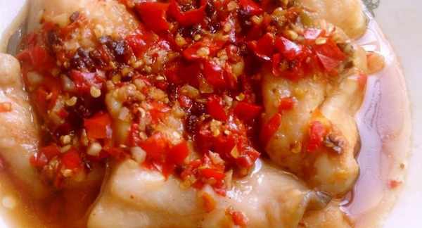 9.将切好的辣椒放在巴沙鱼上,上锅蒸十分钟