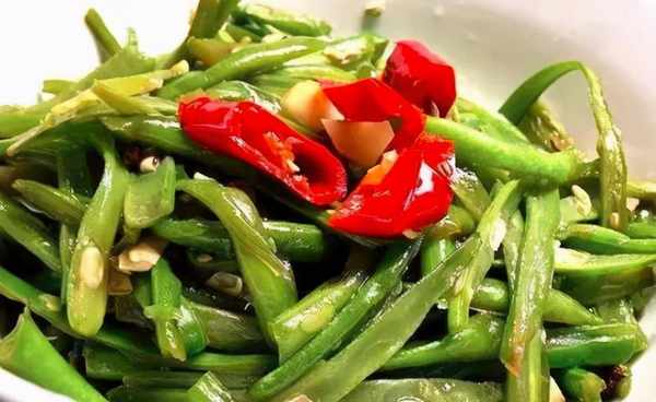 做法:1、广角镜两端取下,撕去老筋,洗净用刀切成条状。