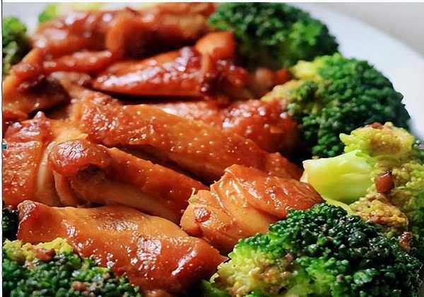 原料:鸡腿2条,西兰花200克,料酒1汤匙,酱油3汤匙,白糖3汤匙,盐1茶匙;