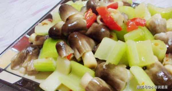 原料:香菇250克,芹菜250克,红辣椒1个,荸荠、姜、蒜、盐、鸡汤。