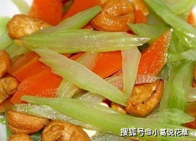材料:西芹、胡萝卜、腰果、油、盐、糖、淀粉