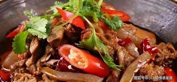 2、猪肉六熟时,可以把辣椒切碎,翻炒,然后加入姜末、蒜末和大蒜,最好是切碎的笋片和香菇。再次沸腾时,立即加入酱油、醋、酒和鸡精。