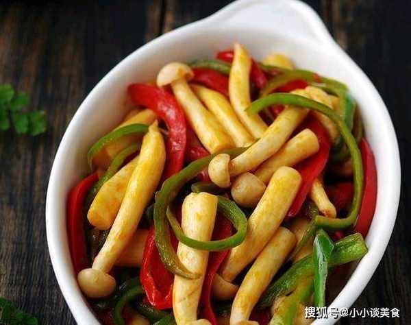 材料:海鲜菇200克、甜椒1个、青椒1个、植物油15克、盐1茶匙、蚝油1汤匙。