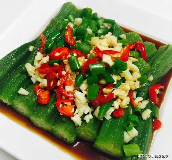 5.将调料倒在秋葵上,拌匀