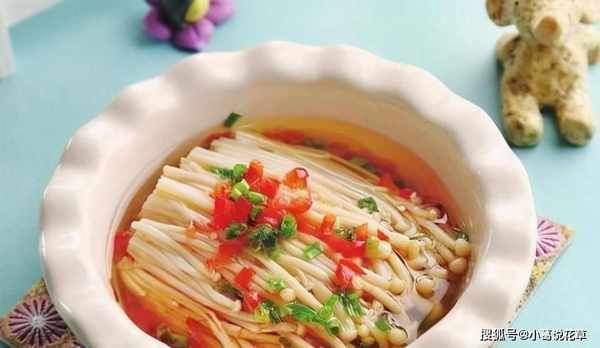 1、金针菇去根,用水洗净,装盘;