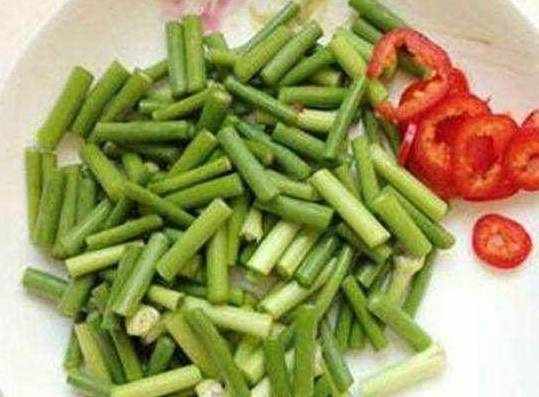 食材都准备好之后,将五花肉切片,要适合大小哦,然后热锅热油,剪至金黄色,倒入蒜薹翻炒一下,加入适量的调味料即可食用啦。