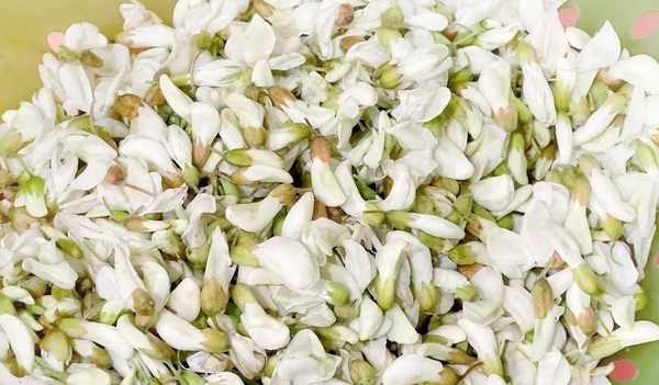 除了生吃之外,我妈妈会经常蒸槐花吃,做法也比较的简单,将摘来的槐花用清水洗净后控一下水分,再撒入适量的面粉,使得每朵槐花上都均匀的裹上面粉,就可以上锅蒸了,蒸好之后,加入少量的盐就可以了。