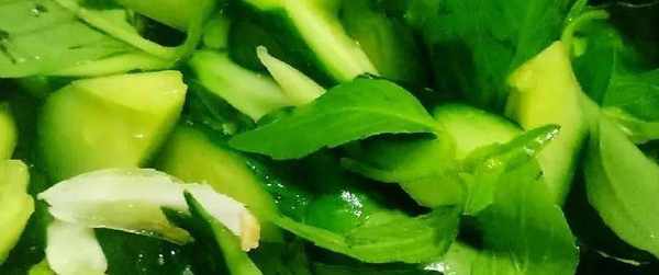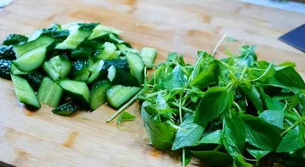 荆芥拌黄瓜是很适合夏天吃的一道菜,小时候爸爸喝酒时会经常吃这道菜,我也能吃上一些,味道还挺不错的,荆芥看起来有点像薄荷,但没有薄荷那般刺鼻,也没有薄荷那么的苦。