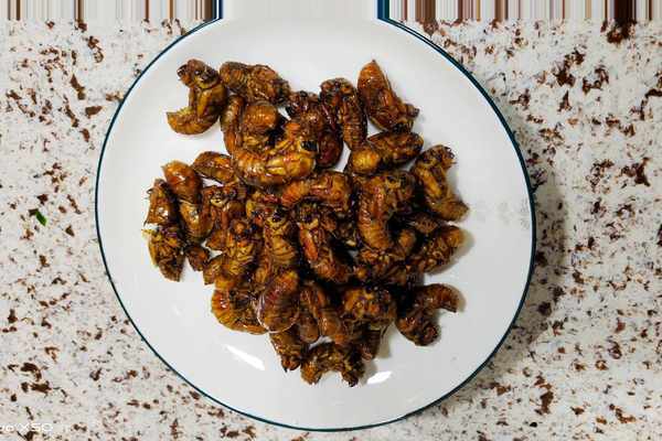 第一步:把冷冻了一年的金蝉,用水化开清洗干净, 然后再上锅蒸熟晾干备用
