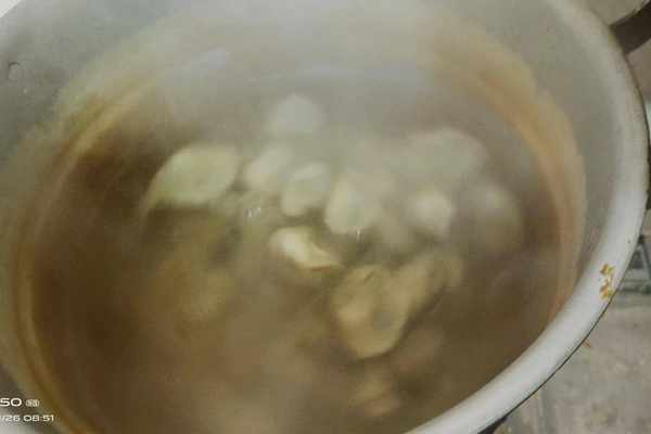 第三步:起锅烧水,水开后下入包好的饺子,中间淋入两次凉水,开两滚就可以装盘使用了