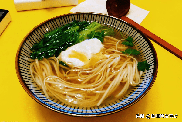 4.放入面条,荷包蛋,加入食盐,鸡精,淋上芝麻油,清淡鲜美的汤面就做好了。