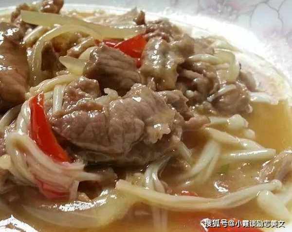 3.转中火,加入金针菇,炒熟;加入适量水,开大火收汁,注意火候控制;