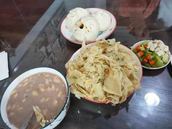 杜同学家开的同福早点,好久不见今天来捧个场。 杜同学热情招待,给我们详细介绍,种类还挺多,有小米粥,黑米粥,豆浆,油茶,胡辣汤,水煎包,手抓饼,油条,茶蛋,各种小菜,包子等;包子有肉馅,素馅,还有第一次听说的鱼香肉丝包子。