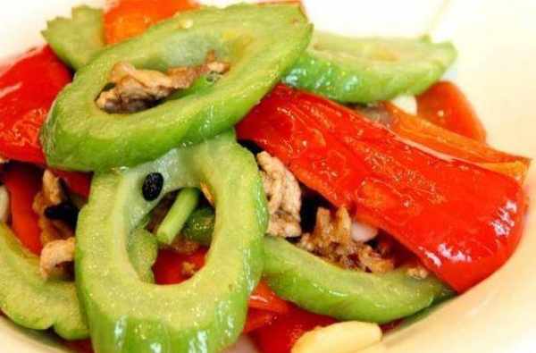 5.加入苦瓜和红辣椒,翻炒至顺滑;