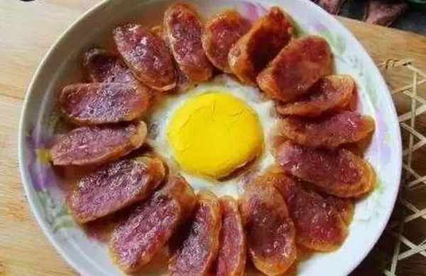 材料:香肠1根、鸡蛋1个、盐适量、料酒适量