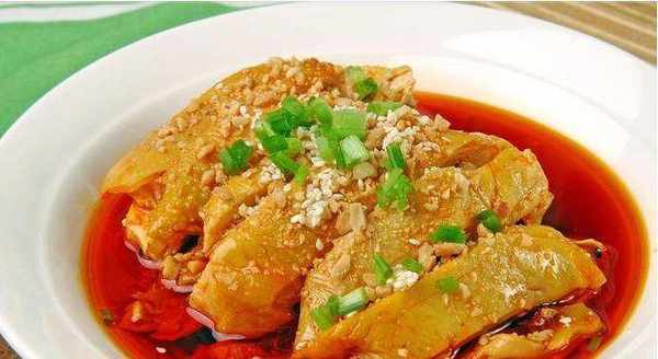 2.将洋葱和小红葱洗净切碎,放入碗中。将花生粉、生抽、香醋、糖、辣椒油、盐、蒜蓉和香油混合,加入鸡高汤备用。将泡好的鸡腿捞出,切块。装盘,淋上调好的酱汁,撒上切碎的香葱即可上桌。