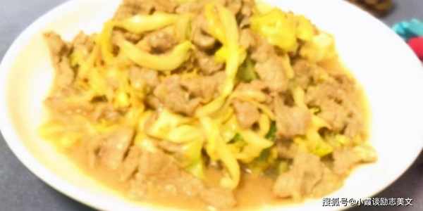 4、锅中留主油,加入白菜炒软。5.倒入牛肉炒1分钟。