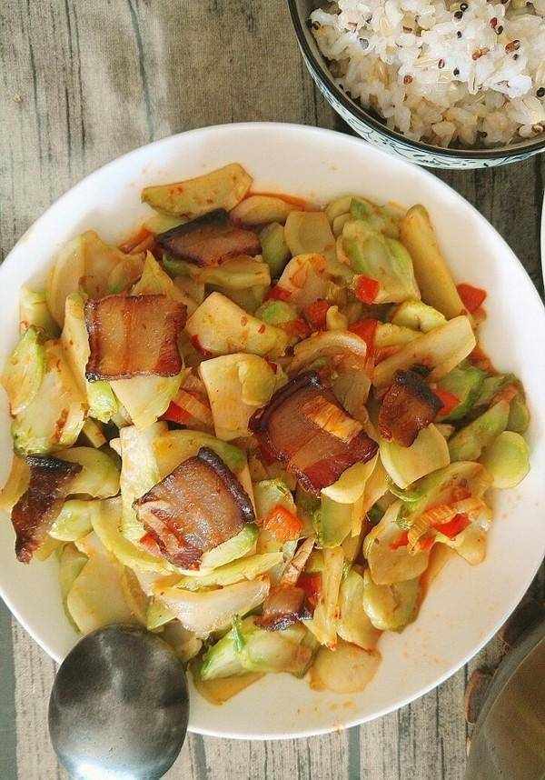 1、原料:蔬菜、猪肉、青蒜、干辣椒等。