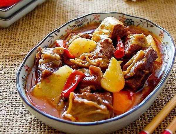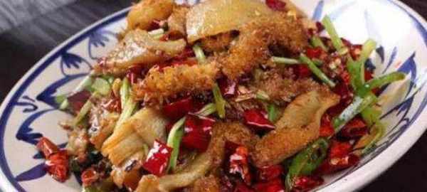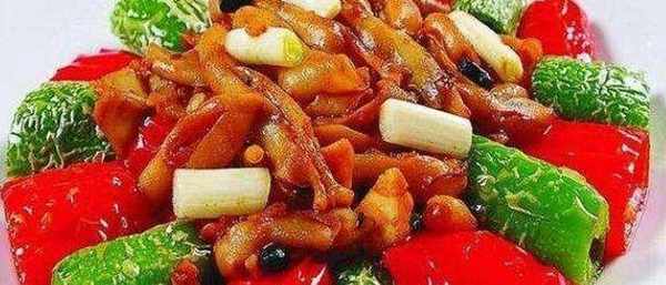 配料:牛肚200克,黄、红辣椒各半,花椒少许,香菇少许,大蒜各半,干辣椒少许,盐、糖、酱油;